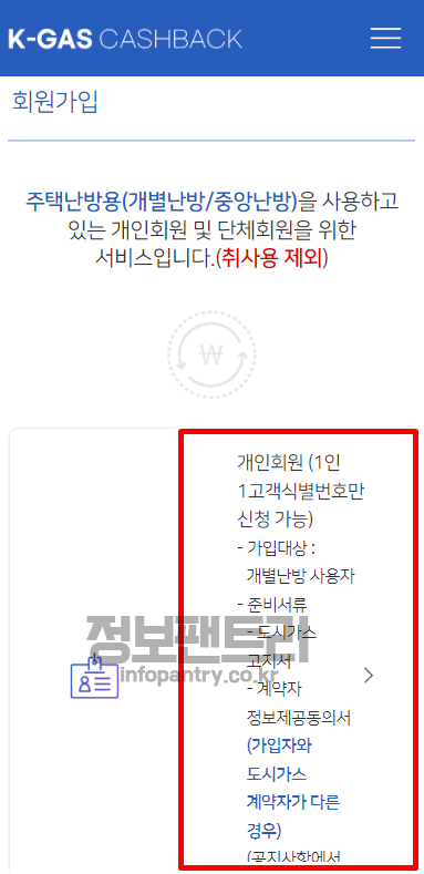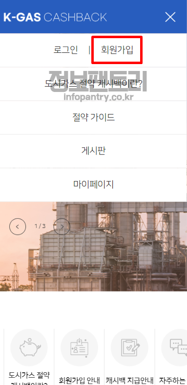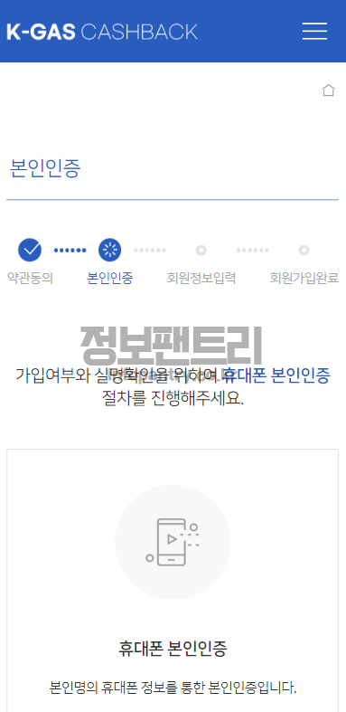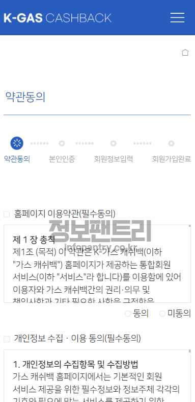 약관동의 필수동의사항들에 체크해주시고 본인인증 후 도시가스사 선택과 고객식별번호를 입력하시면 회원가입 완료와 동시에 캐시백 신청이 자동으로 완료됩니다. ^^ 회원가입만 진행하시면 별다른 신청과정 없이 바로 신청접수가 되는 시스템이랍니다.