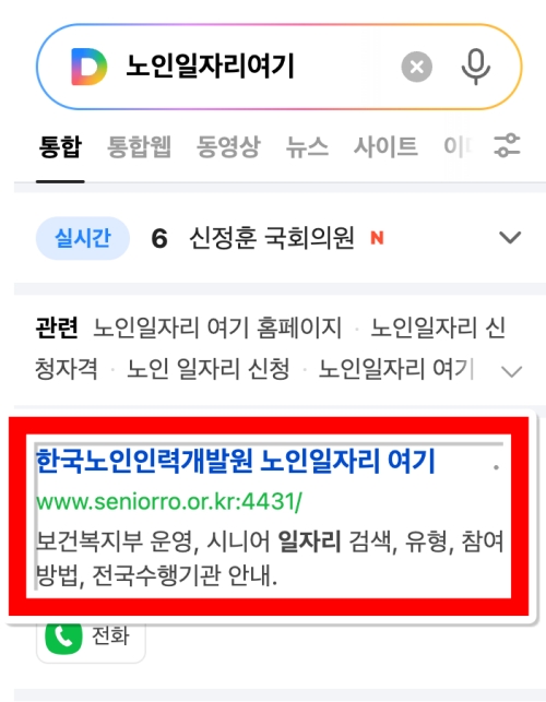 어디서부터 시작해야 할지 막막하게 느껴질 수 있어요. 먼저 자주 이용하는 검색 사이트에서 '노인일자리여기'를 검색하시면 검색 결과에 '한국노인인력개발원 노인일자리 여기'라고 표시된 곳이 바로 공식이에요.