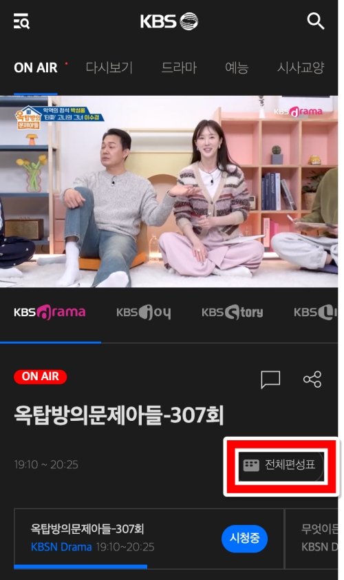 전체편성표 화면으로 이동하니 KBS1, KBS2는 물론이고 KBS WORLD, 드라마, 조이 채널까지 정말 다양한 채널의 방송 정보가 쭉 나왔어요. 현재 어떤 프로그램을 하고 있는지 시간과 함께 자세히 나와 있어서 전체 방송 현황을 파악하기 좋았어요. 덕분에 몰랐던 재미있는 프로그램을 발견하기도 하고, 보고 싶은 걸 바로 찾아볼 수 있었어요.