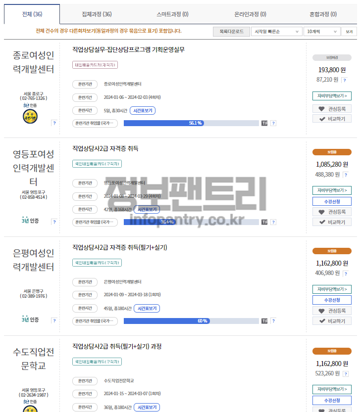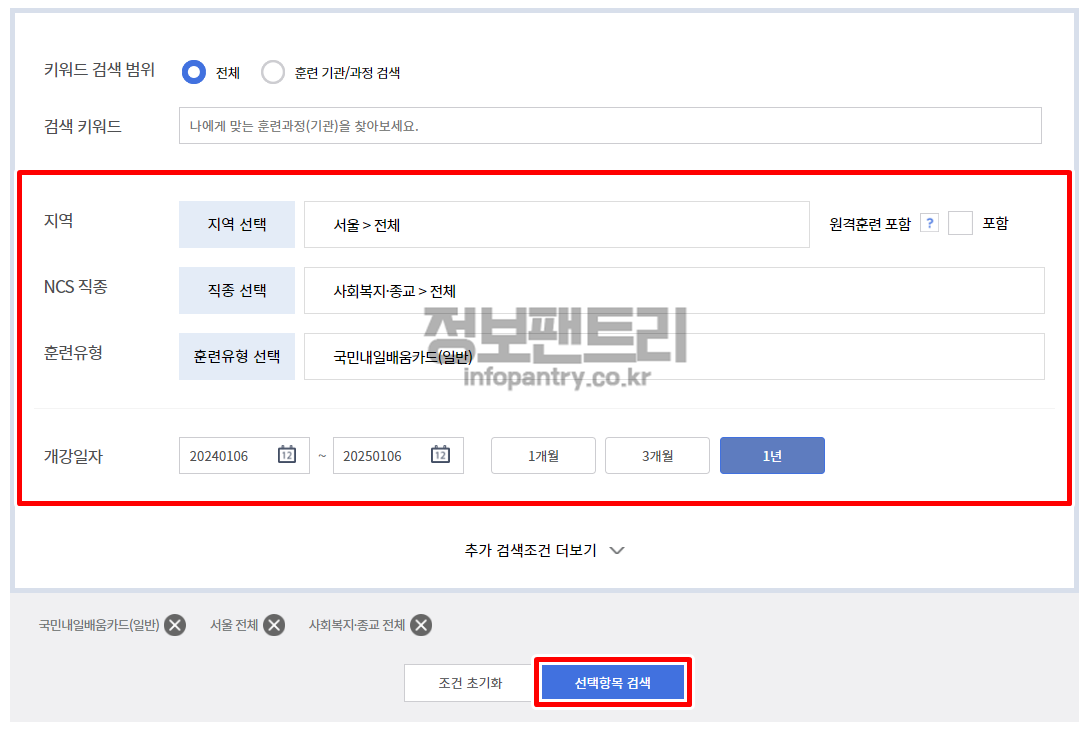 국민내일배움카드 훈련과정으로 들어가시면 간편하게 지역별, 훈련유형별, 직종별로 검색하여 훈련과정과 국민내일배움카드 사용처를 알아볼 수 있답니다.