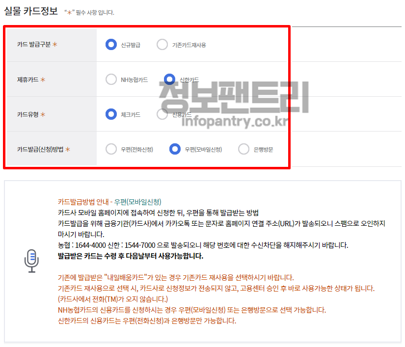 신청하고자 하는 실물 카드정보를 입력해주세요.