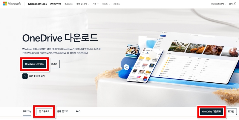 마이크로소프트의 원드라이브 공식 홈페이지에 접속하면 바로 프로그램을 내려받을 수 있는 화면이 나타나요. 화면 중앙이나 하단 등 여러 곳에 'OneDrive 다운로드'라고 쓰인 파란색 또는 검은색 버튼이 보일 거예요. 어느 것을 선택해도 상관없으니, 눈에 잘 띄는 다운로드 버튼을 선택해서 설치 파일을 컴퓨터에 저장해 주세요. Windows 11을 사용하신다면 이미 설치되어 있을 수도 있답니다.