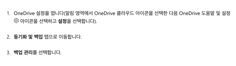 설치를 마치고 로그인을 했다면, 이제 가장 중요한 자동 백업 설정을 해볼게요. 컴퓨터 화면 오른쪽 아래 작업 표시줄의 알림 영역에서 구름 모양의 원드라이브 아이콘을 선택하고, 톱니바퀴 모양의 설정 아이콘을 거쳐 '설정'으로 들어가세요. 설정 창이 열리면 여러 탭 중에서 '동기화 및 백업' 탭으로 이동한 다음, '백업 관리' 버튼을 선택하면 백업할 폴더를 직접 고를 수 있는 화면으로 넘어갑니다.