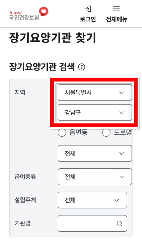 노인장기요양기관 찾기