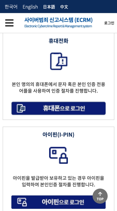 마지막 관문은 본인인증이에요. 인증 방식은 크게 두 가지, '휴대전화'와 '아이핀(I-PIN)'이 있어요. 저는 보통 간편한 휴대전화 인증을 이용하는 편이에요. 본인 명의의 휴대폰으로 인증번호를 받아서 입력하면 되니까요. 본인에게 편한 방법을 선택해서 인증을 마치면, 드디어 피해 내용을 작성하는 화면으로 넘어갈 수 있습니다.