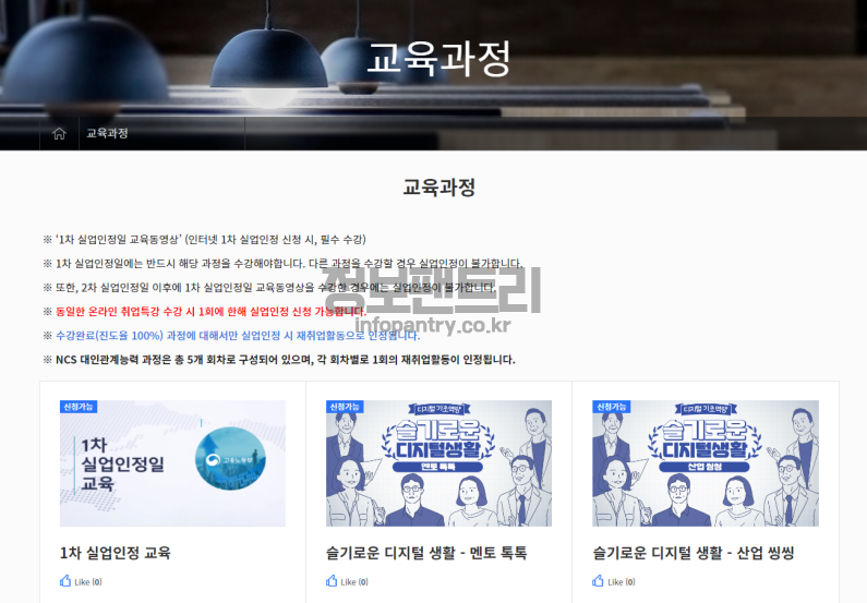 온라인 취업특강 교육과정은 1차 실업인정 교육동영상을 필수로 시청하시고, 다양한 취업특강 중 마음에 드는 강의를 수강하여 수료하시면 됩니다.