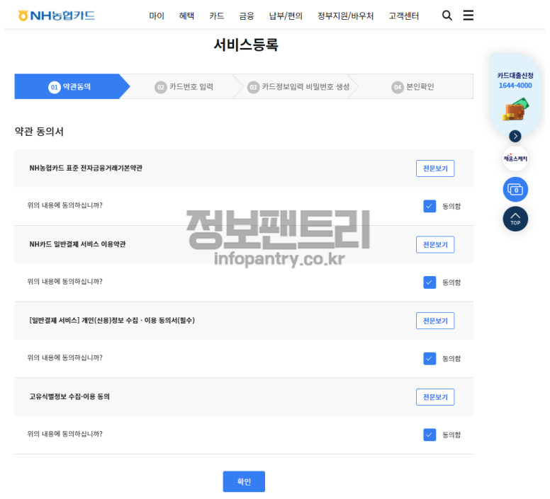 - NH농협카드 서비스등록 약관 동의를 진행해주세요.