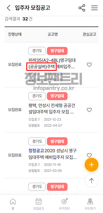 제목에 영구임대 혹은 공공실버 라고 되어있으면 고령자 복지주택 입니다. 원하는 공고를 눌러보세요. 고령자 복지주택 모집공고의 자세한 내용을 확인할 수 있습니다.
