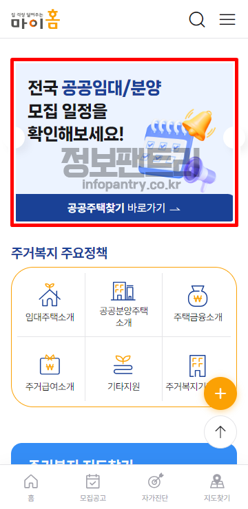 국토교통부 LH 운영 주거복지포털 마이홈으로 들어갑니다.
