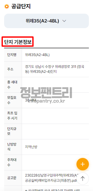 공급단지의 기본정보와 공급정보, 일정 정보 등 상세내용을 확인하세요.