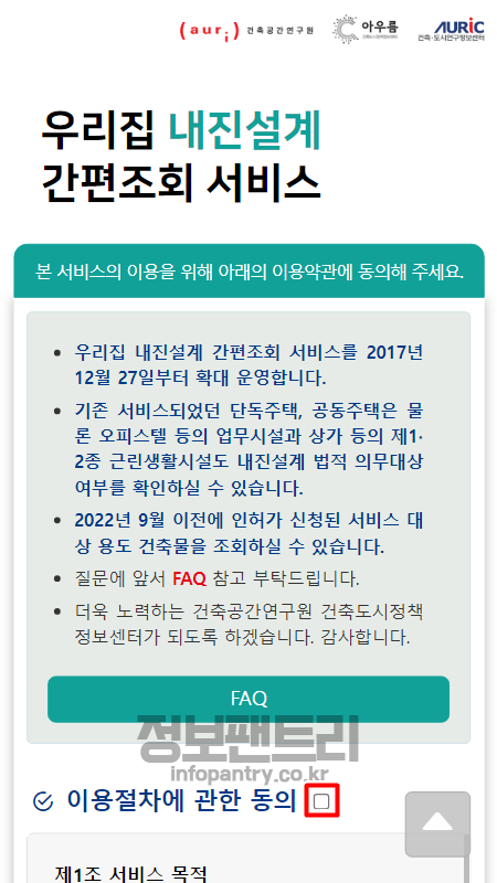 - 아파트 내진설계 간편조회 서비스 이용약관에 동의 해주세요.