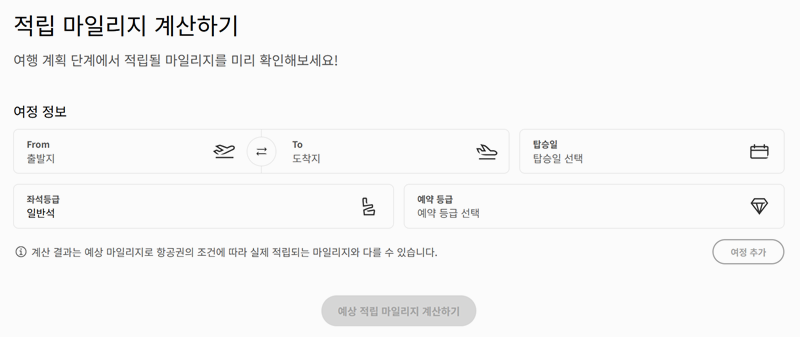 6. 그리고 현재 보유한 마일리지뿐만 아니라 적립 예상 마일리지도 확인 가능합니다. 여행 계획을 세우고 계시다면 . 홈페이지의 적립 마일리지 계산을 통해 적립될 마일리지를 계산해 보세요.