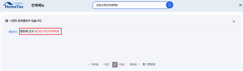 3. 근로소득간이세액표를 검색하면 결과에서 해당 항목이 나옵니다. 눌러서 들어갑니다.