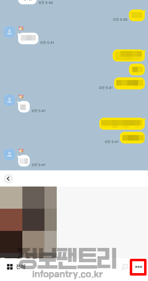 4. 사진첩의 사진들이 보여질텐데요, 하단 오른쪽에 점 세개로 보이는 아이콘을 선택합니다.