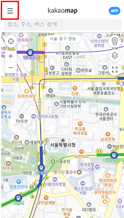 1. 다음지도(카카오맵)으로 들어가시고 상단 왼쪽에 메뉴창을 열어주세요.
