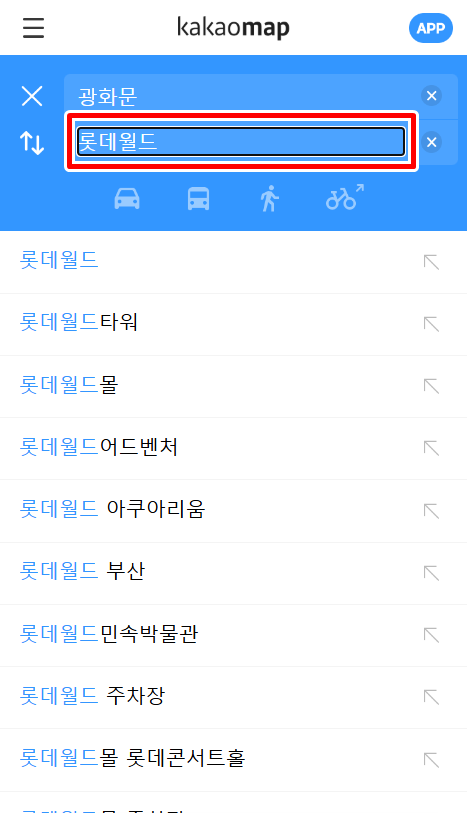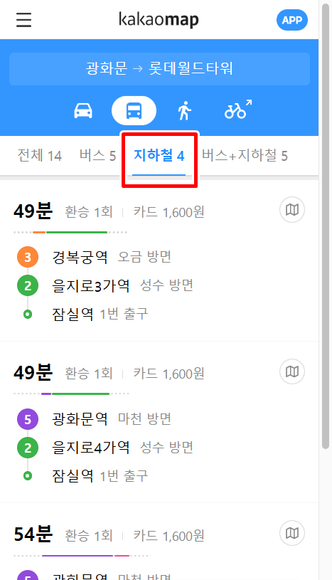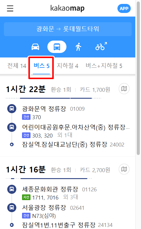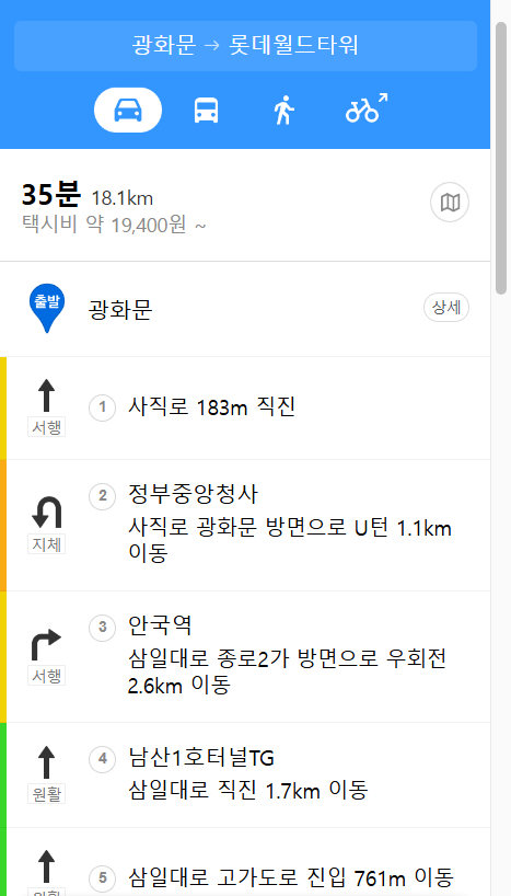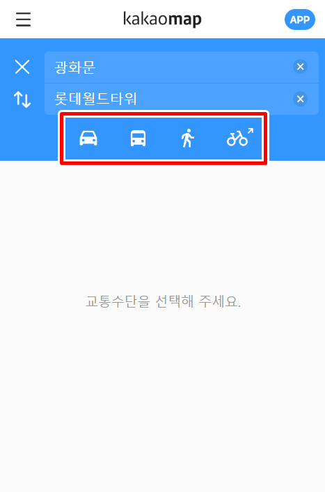 7. 이제 길찾기 하실 교통수단을 선택해 주세요.