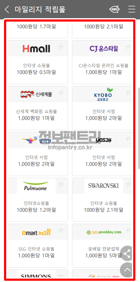 2. 아시아나항공 마일리지 제휴 쇼핑몰 목록을 볼 수 있는데요, 이 곳을 통해 제휴사 쇼핑몰로 접속하셔야만 이사아나항공 마일리지 적립 서비스를 이용하실 수 있어요.