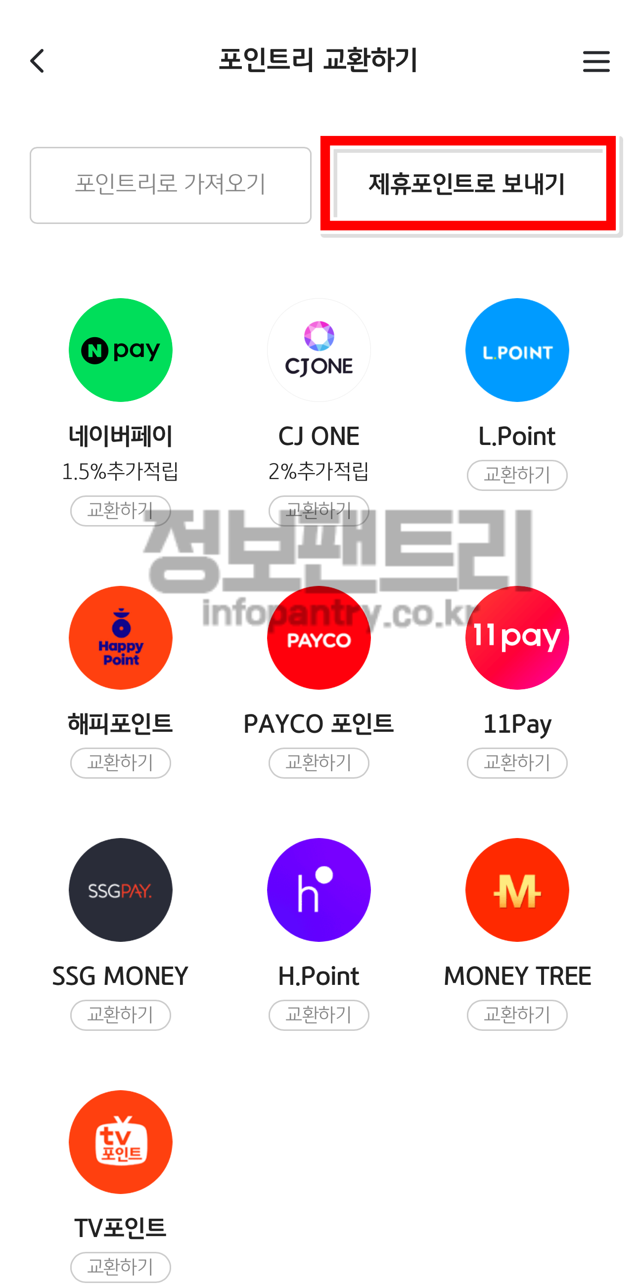 제휴사 포인트를 국민카드 포인트리로 가져오실 수도 있고, 반대로 국민카드의 포인트를 쿠팡캐시, 네이버페이, 해피포인트, 엘포인트 등의 제휴사 포인트로 교환하실 수 있어요.