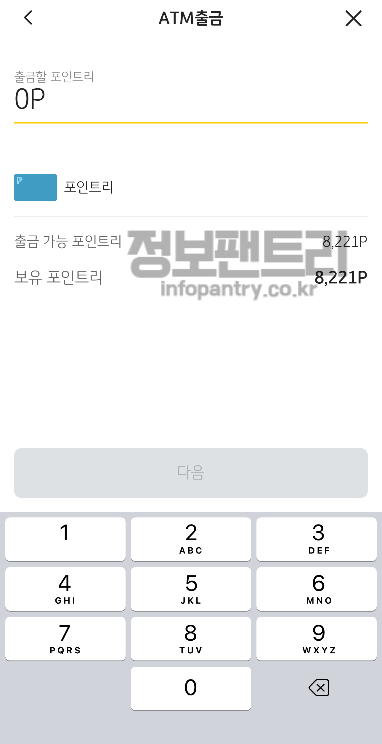 출금 가능한 포인트를 원하는 금액에 맞춰 입력하여 ATM에서 현금으로 출금하실 수 있는 서비스 입니다.