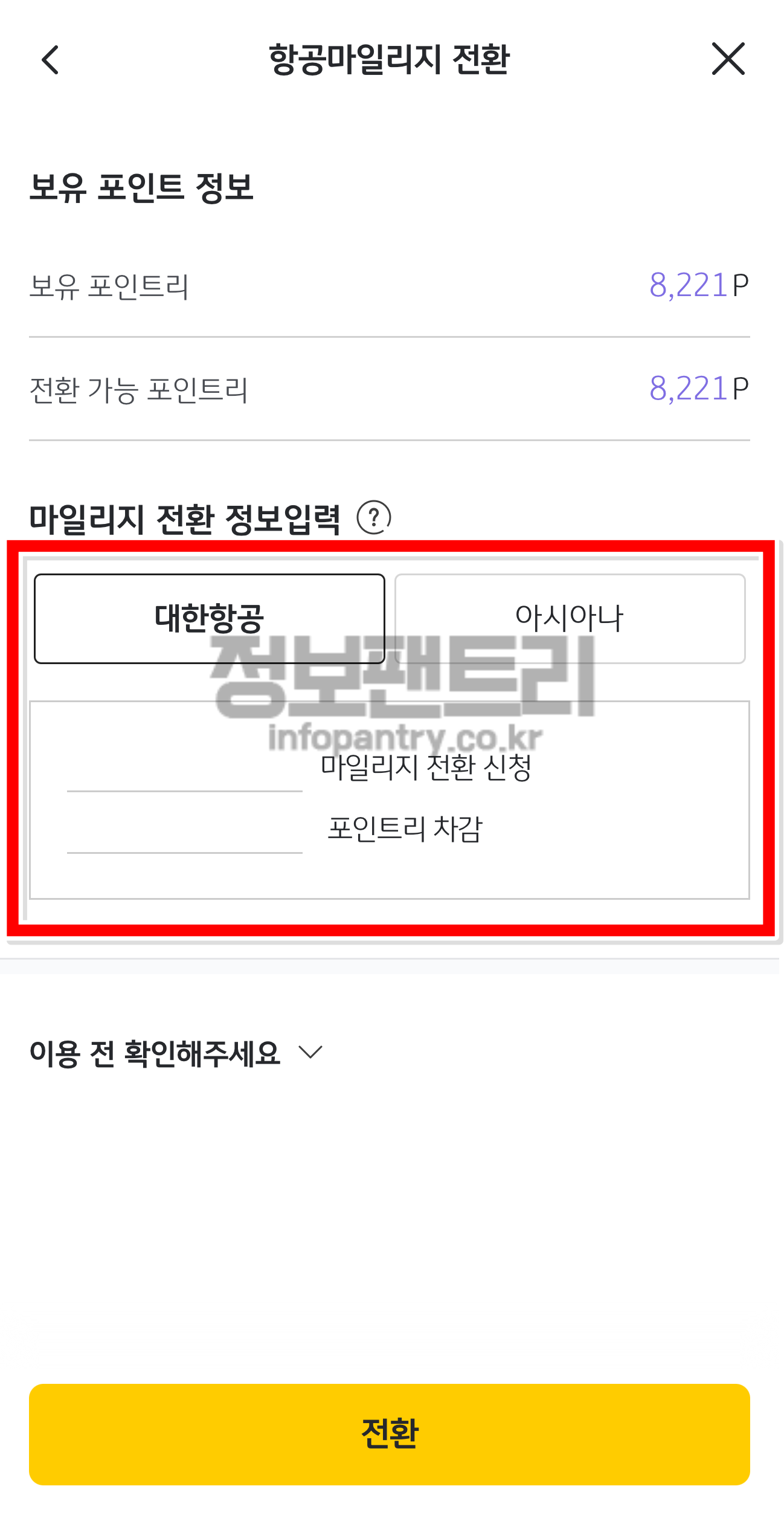 항공마일리지 전환