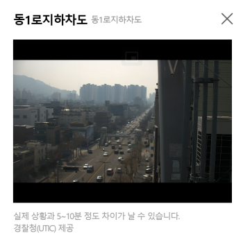 7. 카카오맵에서 제공하는 실시간 CCTV 영상은 실제 상황과 5~10분 정도 차이가 날 수 있다고 안내하고 있습니다. 도로 정체 여부를 미리 확인하고 효율적인 경로를 선택하는 데 도움이 될 것입니다.