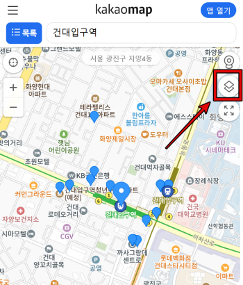 4. 지도를 확인할 때 오른쪽에 있는 아이콘을 활용하면 다양한 보기 방식을 선택할 수 있습니다. 일반 지도뿐만 아니라 cctv, 각종 교통정보 등 다른 형태로 지도를 볼 수 있어요. 이 기능을 활용하면 도로 상황을 더 정확하게 파악할 수 있어서 목적지를 찾는 데 편리합니다.