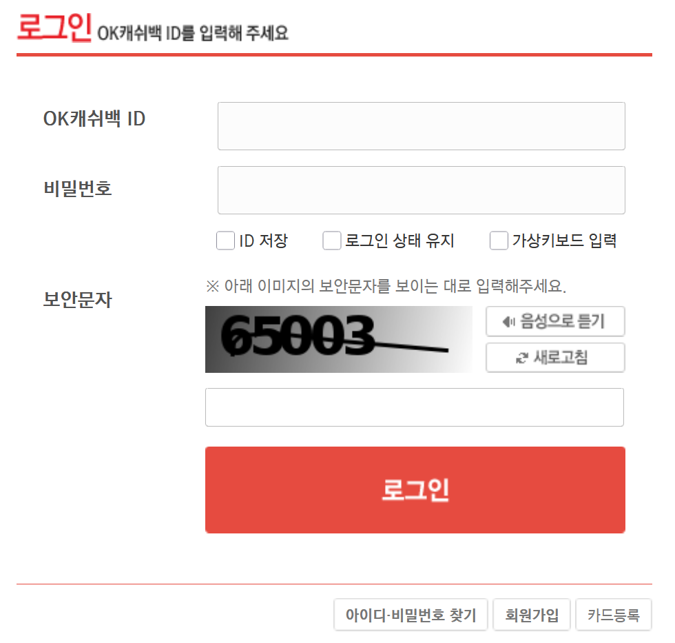 3. 포인트를 현금으로 전환하려면 먼저 OK캐쉬백 회원으로 가입해야 합니다. 아직 계정이 없다면 회원가입을 진행한 후 로그인을 해주세요. 이미 아이디가 있다면 바로 로그인하고 다음 단계로 넘어가면 됩니다.