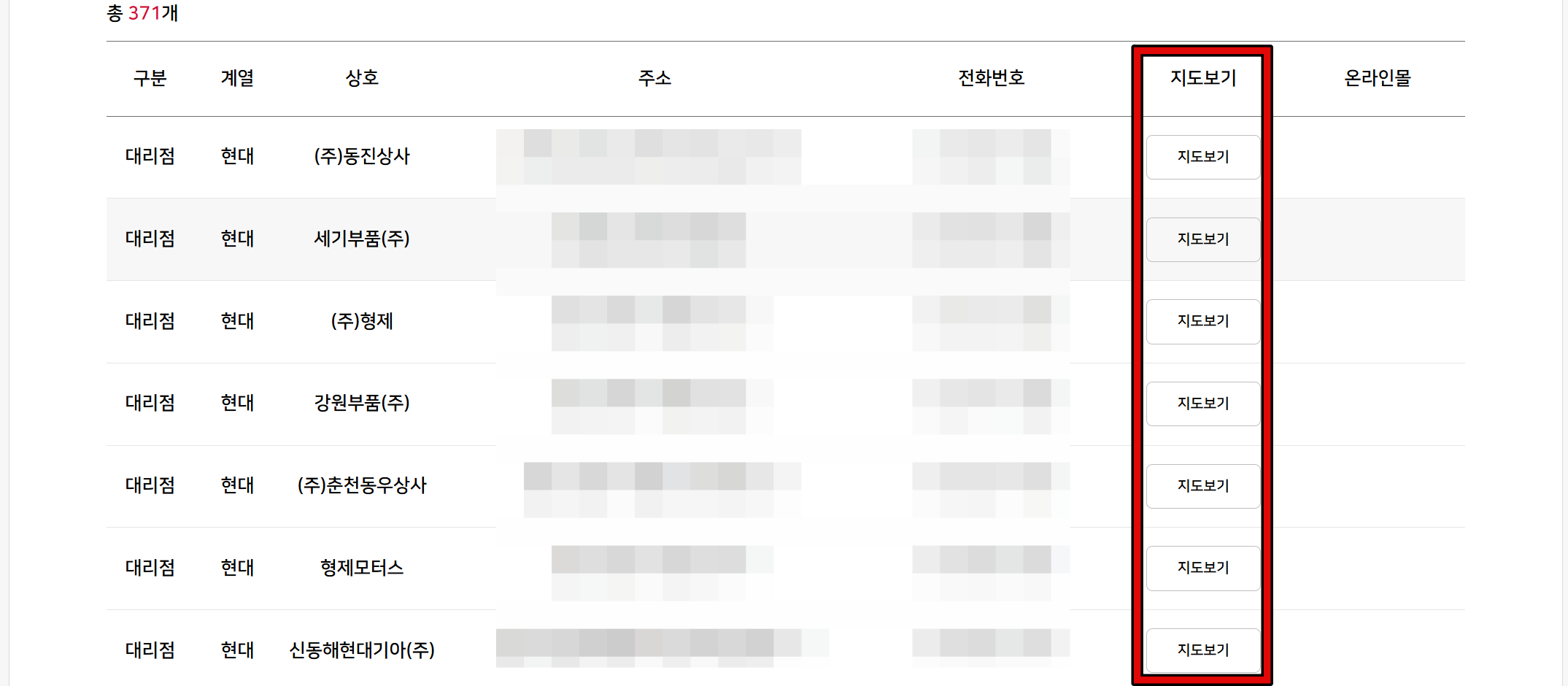 5. 그럼 해당 부품을 보유한 각 대리점의 상호, 주소, 전화번호 등이 함께 정리되어 있습니다. 지역별로 원하는 부품을 취급하는 곳을 찾을 수 있도록 구성되어 있습니다.
