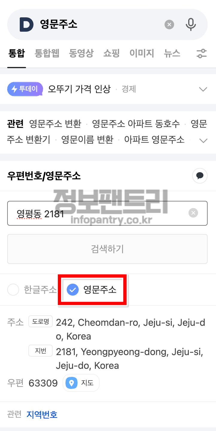 2. 거주지 주소를 영어로 작성해주셔야 해요. 검색창에 영문주소로 검색하시면 우리집 주소를 영어로 바꿔줘요.