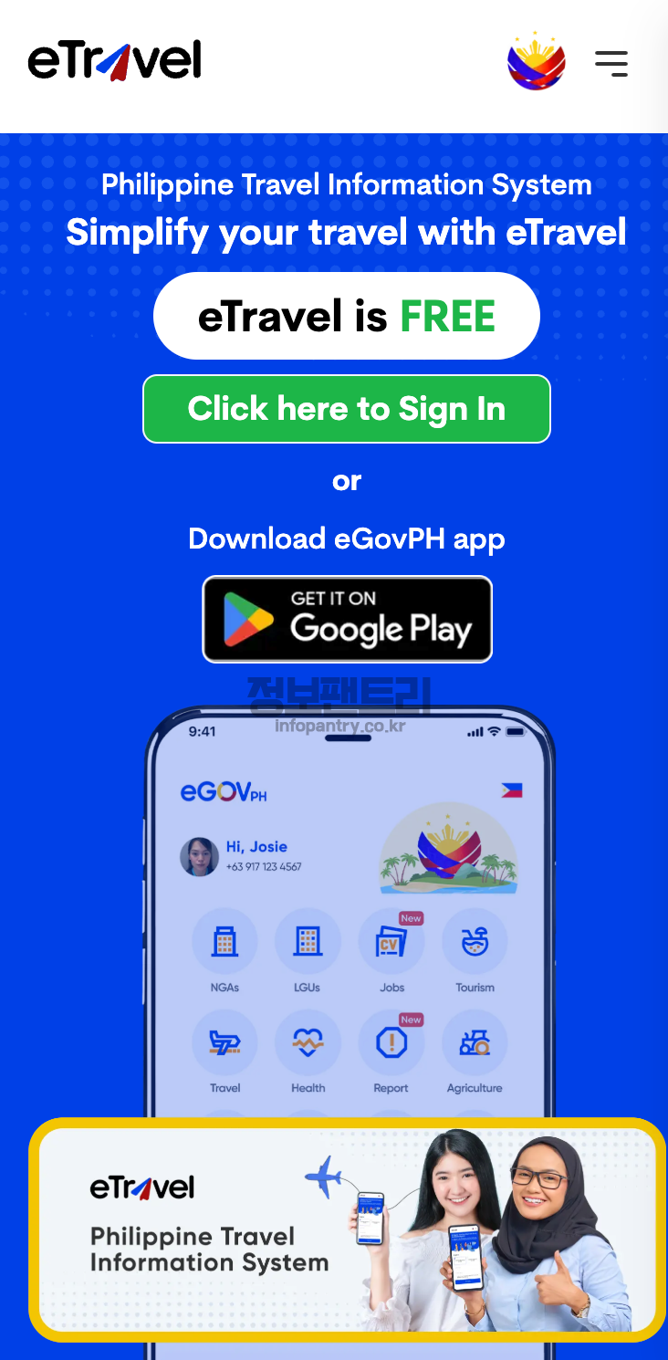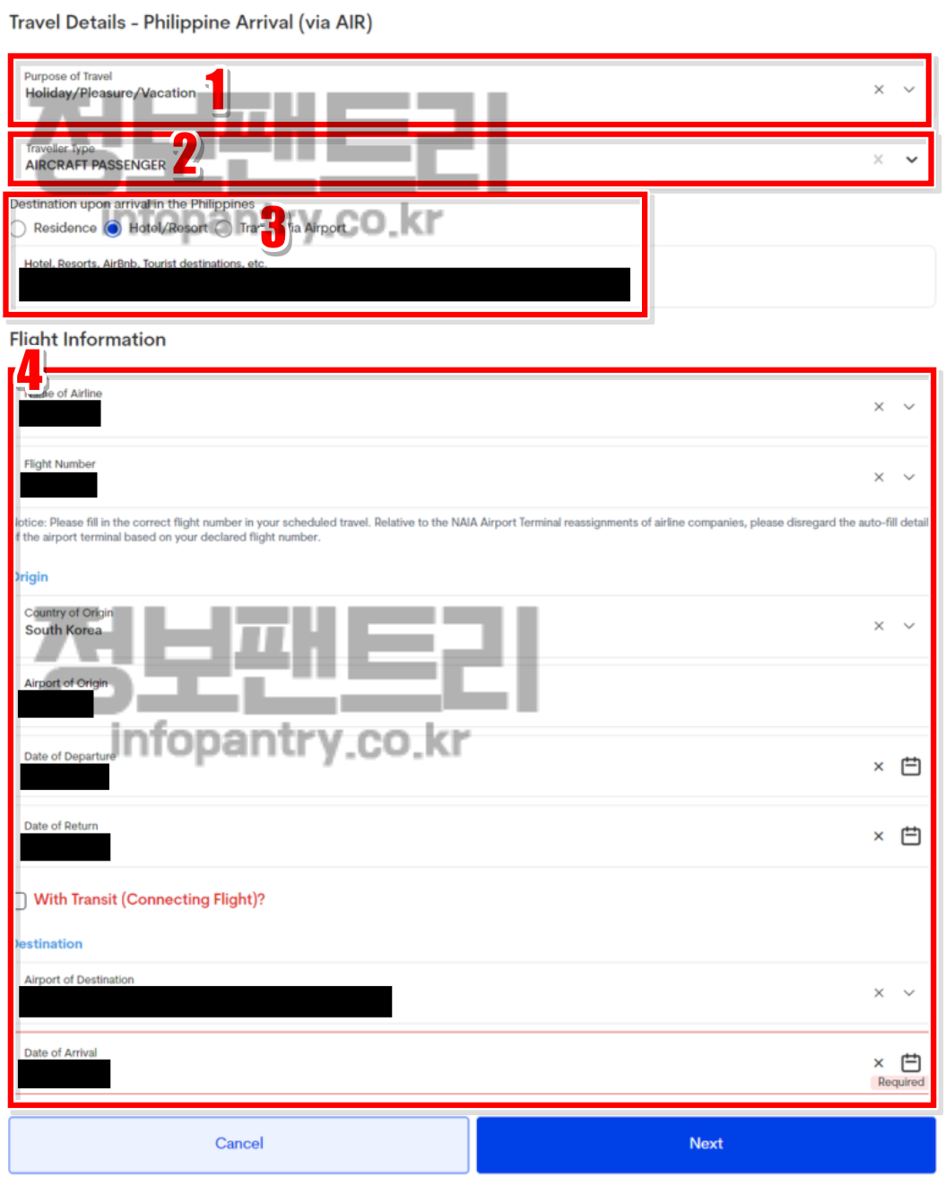 필리핀 정부에서 운영하는 이트래블에서 필리핀 입국신고서 작성법 입니다.