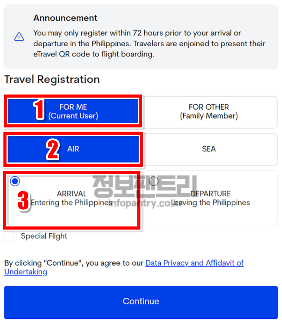 3. 필리핀에 입국하시는 거니까 ARRIVAL 선택하세요.